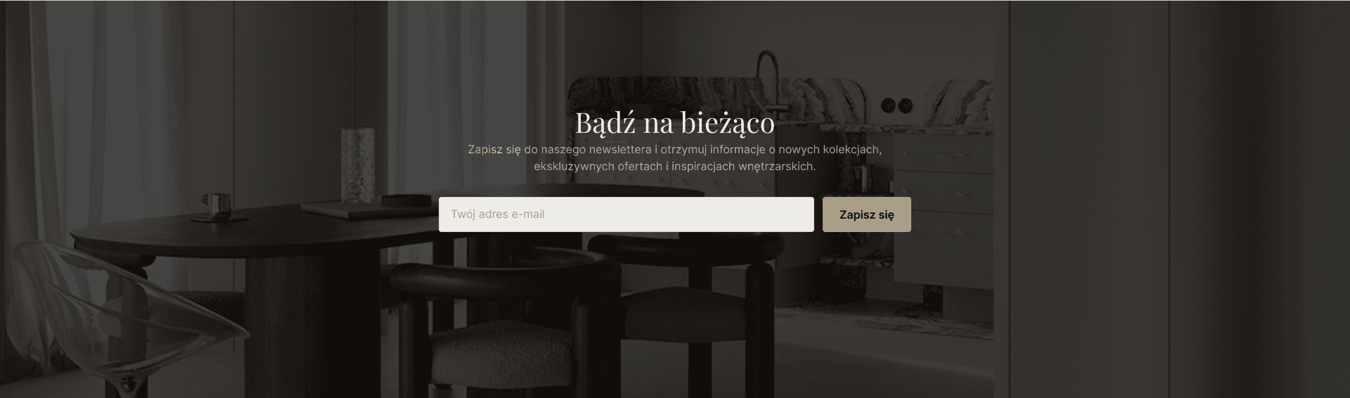 Zapisz się do naszego newslettera i otrzymuj informacje o nowych kolekcjach, ekskluzywnych ofertach i inspiracjach wnętrzarskich.